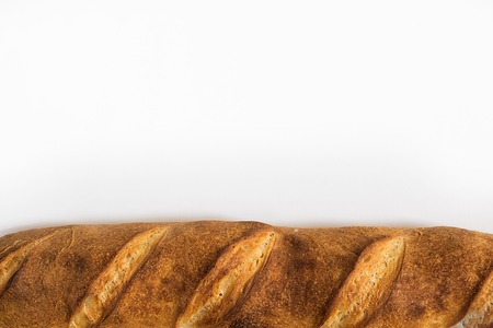 Fresh bread isolated on white background. Baguette. Bread viewed from above