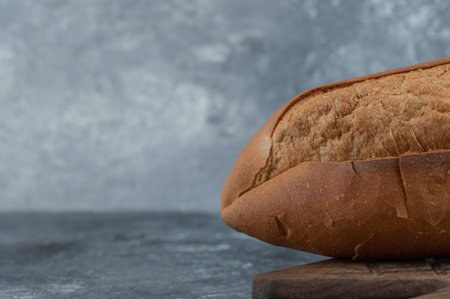 Close up photo of loaf of bread on grey background