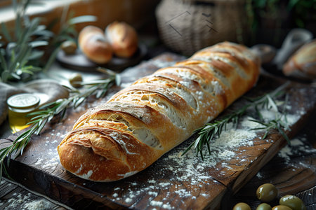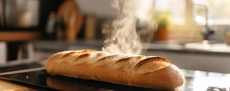 freshly baked baguette bread in French style