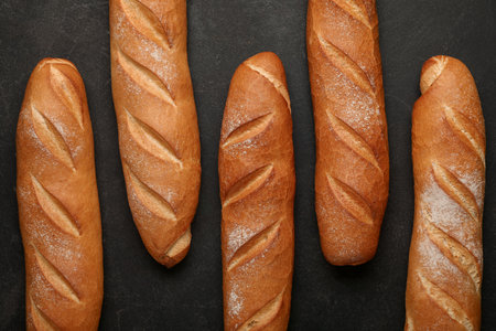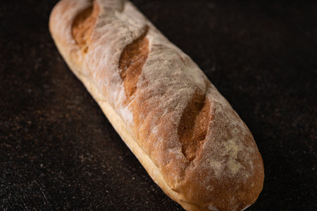 Rustic baguette bread on dark background