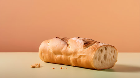 Minimalist French baguette on colored background. fresh bread as background, top view with space for your text or design.
