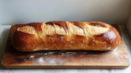 British White Bloomer or European sourdough. Baton loaf bread on a neutral background. fresh loaf bread.