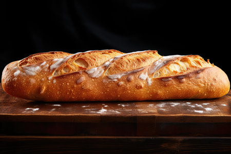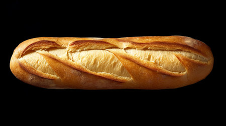 French loaf on black background, frontal view, low key photo