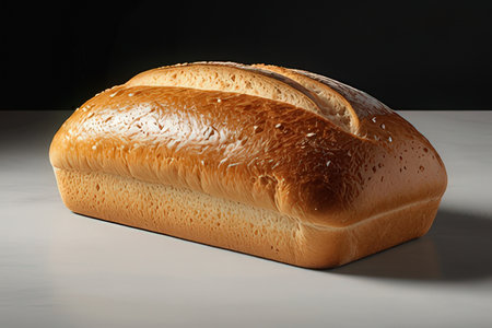 loaf of bread on a white table and black background, close-up
