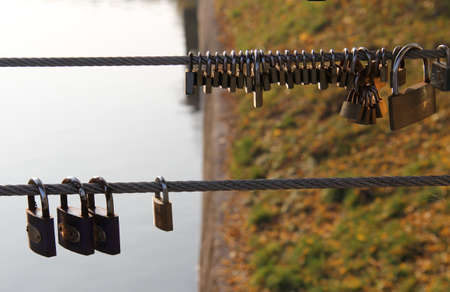 Old padlocks on the bridge as a sign of love forever.