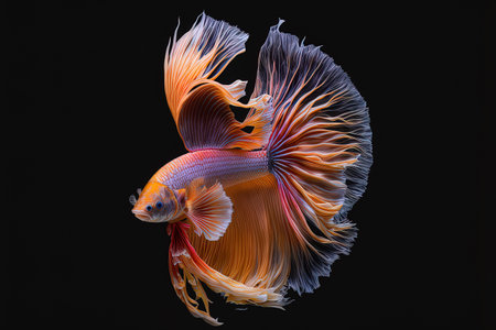 Vibrant Betta Fish Siamese Fighting Fish Isolated on Black Background Closeup Shot of Colorful Elegant and Lively Betta Splendens Aquarium Pet in Captivating Underwater Scene