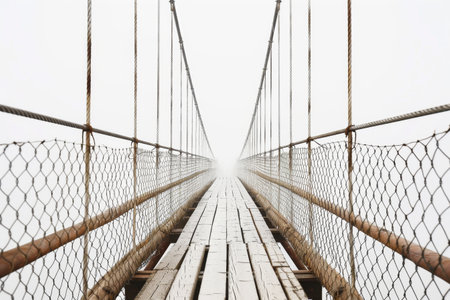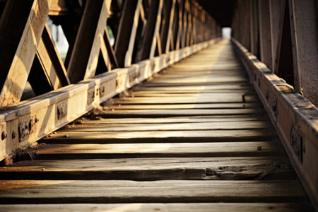detail of an old wooden bridge beside a shiny steel bridge, created with generative ai