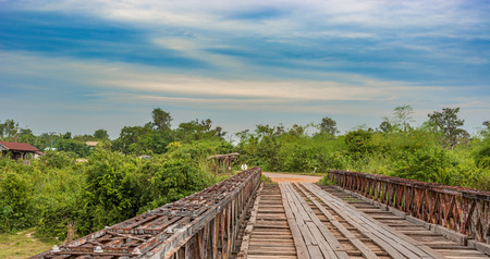 Bridge for crossing the tributary of the Mekong river in Laos near Savannakhet.