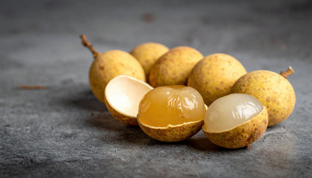 Longan fruit close-up macro photography. Longan is a species of tropical fruit.