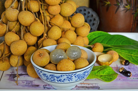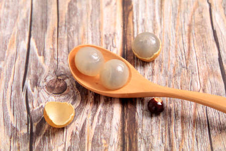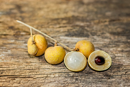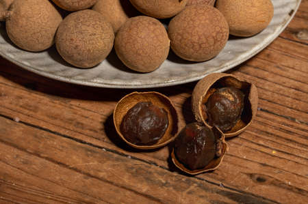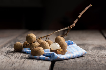 Logan (Dimocarpus longan.) on wood table. with low key scene.