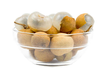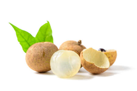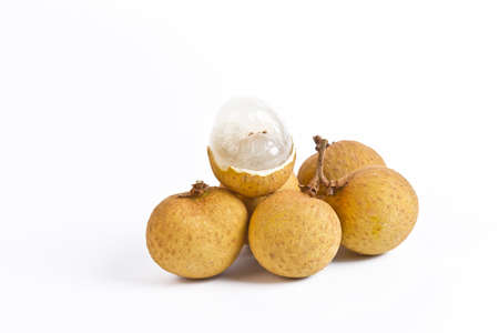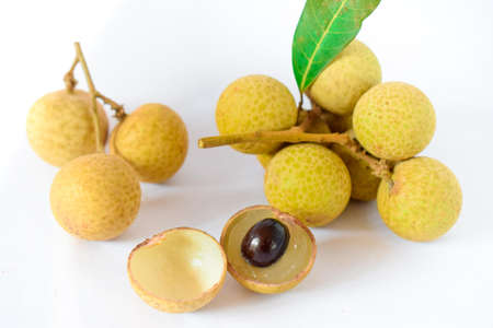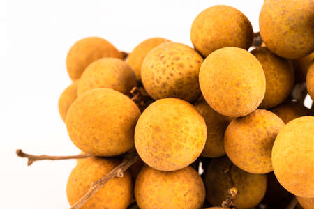 Close up of photo of very fresh longan fruits ( Dimocarpus longan ) isolated on white background