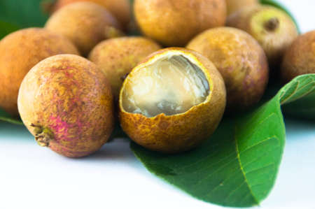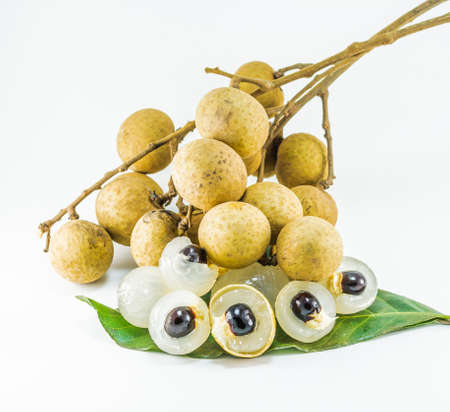 Fruit fresh longan with leaf ripe and sweet on white background,close up
