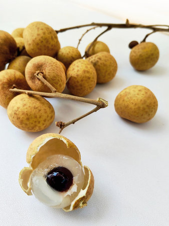 Fresh longan fruits (Kelengkeng), healthy snack, selective focus image.