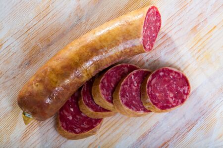 Smoked sausage, a composition of traditional dry, thin rural meats Regional food.