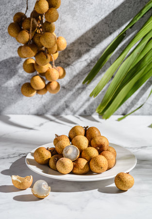 Fresh longan fruits (Kelengkeng), healthy snack, selective focus image.