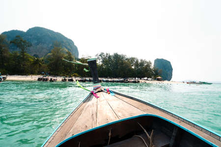 head of side view wooden boat in the tropical-andaman sea Trang, Thailand