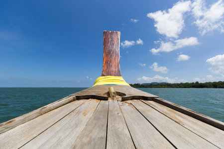 Front of the long tail boat with blue sky