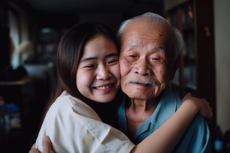 love, smile and hug with grandpa and girl in home for happy memory, care and bonding, created with generative ai