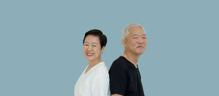 Asian retired senior elder couple smile happy positive on isolated background healthy relationship