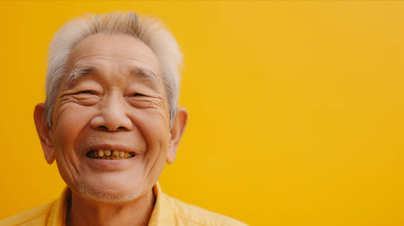 Asian elderly man on a yellow background.