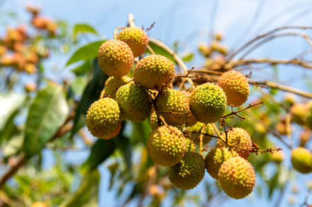 Summer season fresh juicy lychee fruit ready to pluck from tree organic fresh seasonal fruit