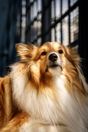 collie dog in morning sun