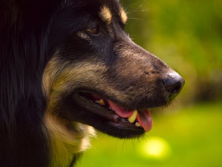 Mongrel dog is photographed a closeup