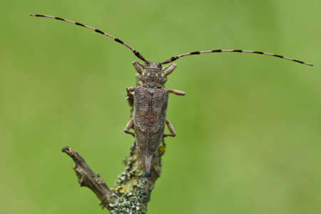 Long-whiskered beetles - Cerambycidae- , brown, with a soft, full body on the hind wings decay in nature sitting on the bark of a birch tree. high quality photo