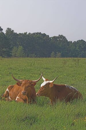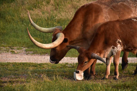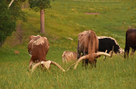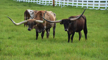 Longhorn Cattle and green grass