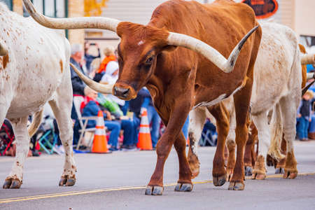 Longhorn walking in the Cowboy Christmas Parade at Oklahoma