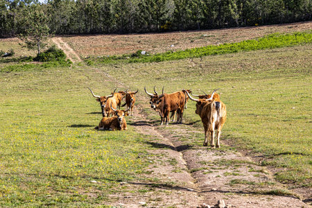 Fantastic paddock with a herd of longhorn cattle.