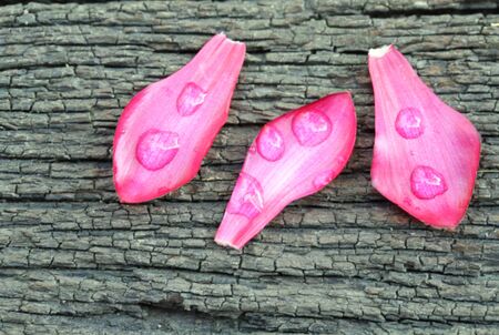 Pink Lotus Petals on Wooden Board Background