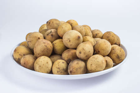 langstan tropical fruit yellow-brown fruit on an isolated background
