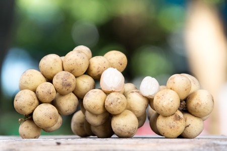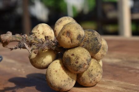 delicious thai fruit longkong on wooden table outdoors