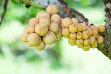 Langsat or Longkong or Lansium parasiticum is ready to harvest, too many productive found on the tropical fruit tree, Thailand, close up