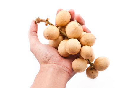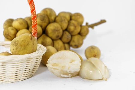 Longkong fruit or Lansium parasiticum is tropical fruit in Thailand and south east Asia on white background