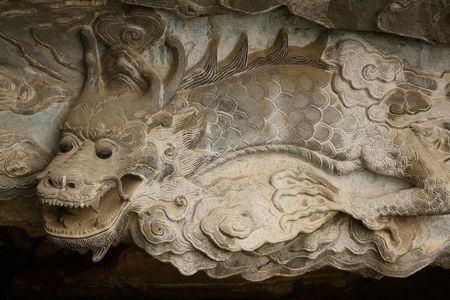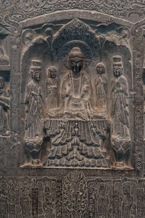 Stone carving on the cliff at Longmen Grottoes, Luoyang, Henan, China
