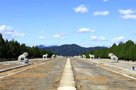 ZUNHUA MAY 18: traditional Chinese style white marble arch landscape architecture, Eastern Tombs of the Qing Dynasty on may 18, 2014, Zunhua county, Hebei Province, China.