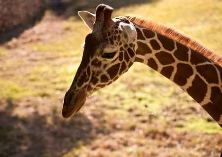 Giraffe close up portrait in open zoo