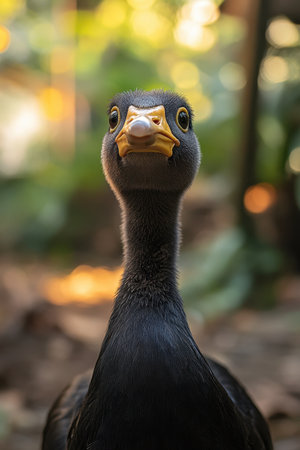 This large bird stands prominently in its surroundings showcasing distinct features and a curious expression while basking in natural light.