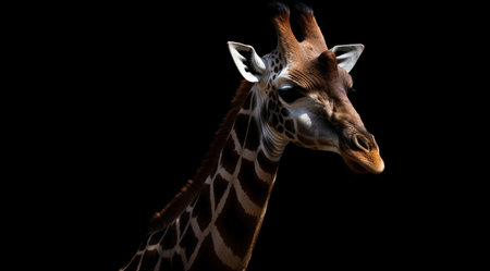 Giraffe on a black background, created with Generative AI technology.