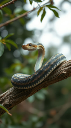 Majestic snake posed elegantly against a dark background in a striking display of natures beauty and detail