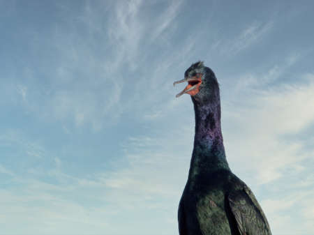 Pelagic cormorant perched on wooden piles along the coast of Sidney BC