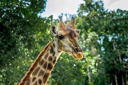 Close up portrait of a giraffe camelopardalis in nature and zoo
