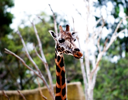 Funny giraffe with tounge out,