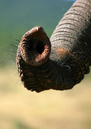 An elephants trunk as he smells and tests the air