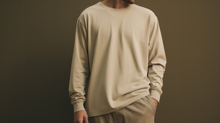 AI Generated. High Resolution White Crew Neck Sweater Long Sleeves Soft Comfortable Design Mockup