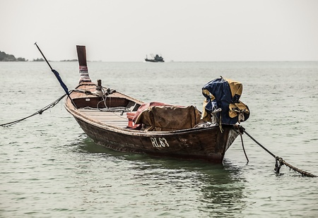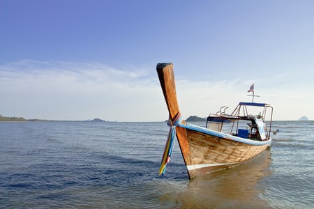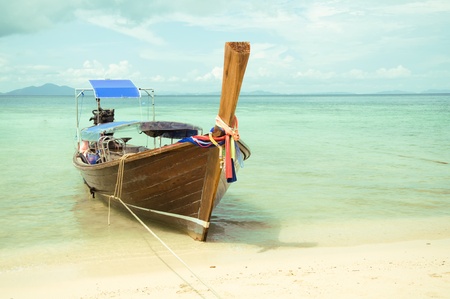 Trung - Thailand Nov,28 2016 : View of a traditional boat on a beach in the Andaman sea in south Thailand On November,28 2016 at Trung Province, Thailand.