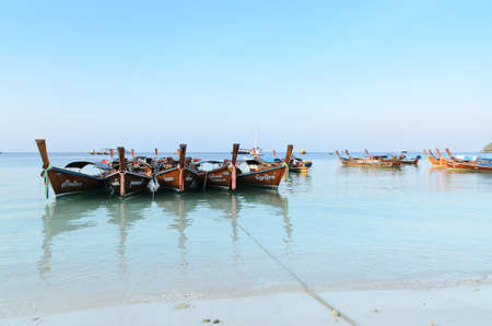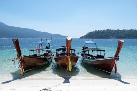 Long tail Boats mooring at Beach and sea at Lipe Island , Thailand