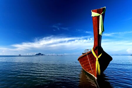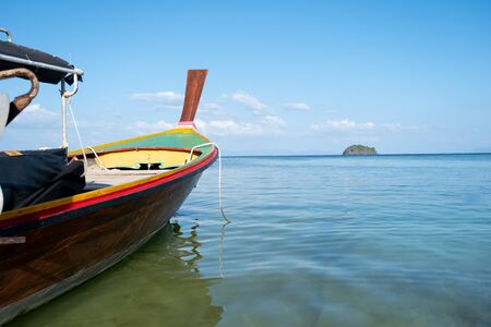 Long tail boat in Krabi,On the boat travel to the islands, clear skies and sea.